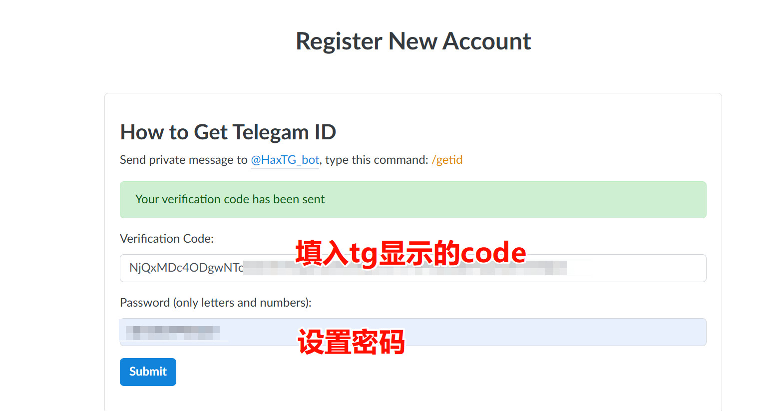 输入确认code和密码(自己设置的密码,最好自己记住这个密码,没有地方可以查看)