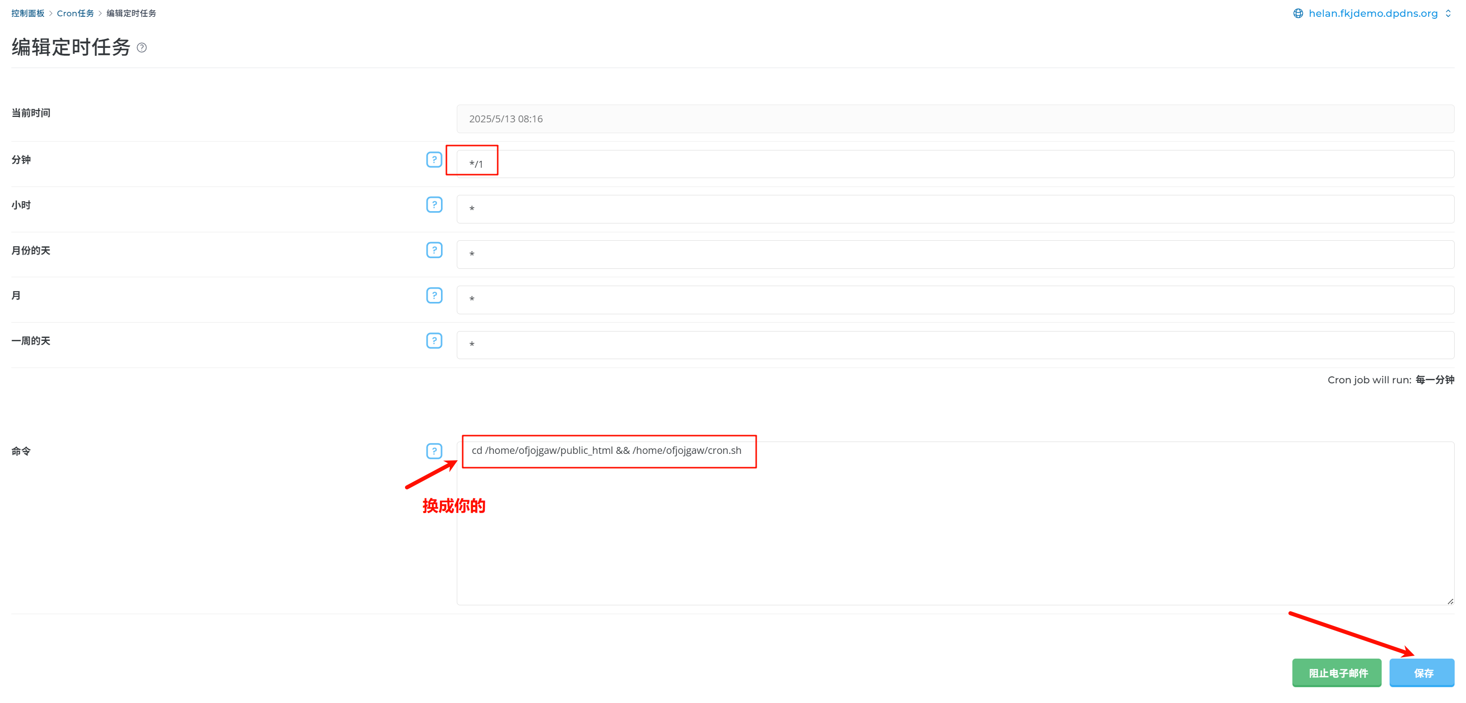 6. 手动搭建cron任务(此步骤针对most服务器,freecloud服务器可忽略,原因见Q10)