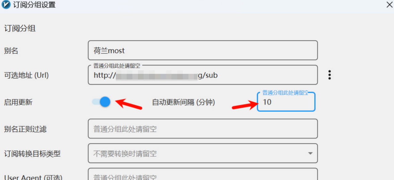 将 https://你的域名/sub 放入客户端的订阅链接中,并设置定时更新时间,以保持链接活性。