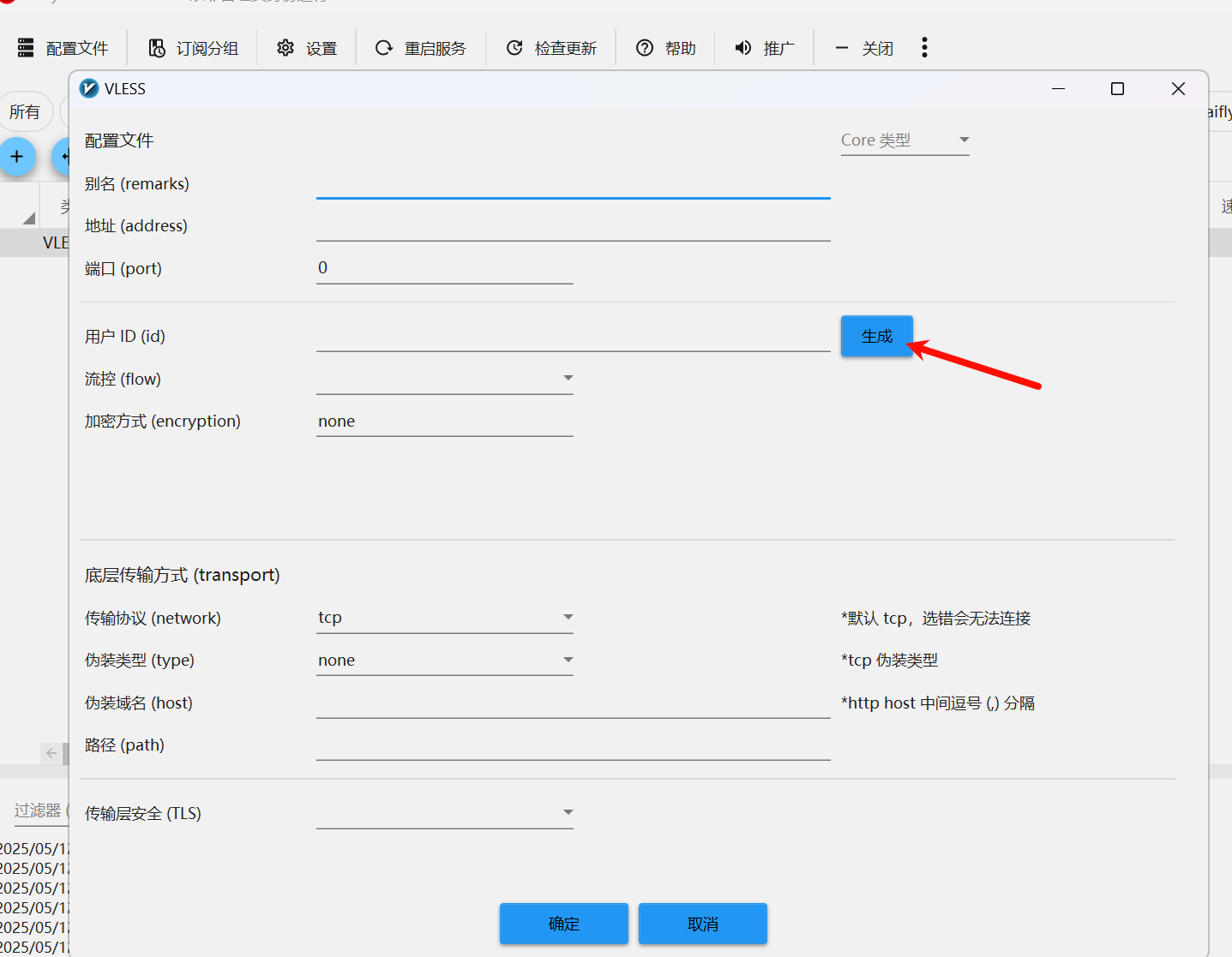 - UUID:这是你自己生成的,可以通过一些在线工具生成,或者在v2rayN中新建一个vless服务器时生成。